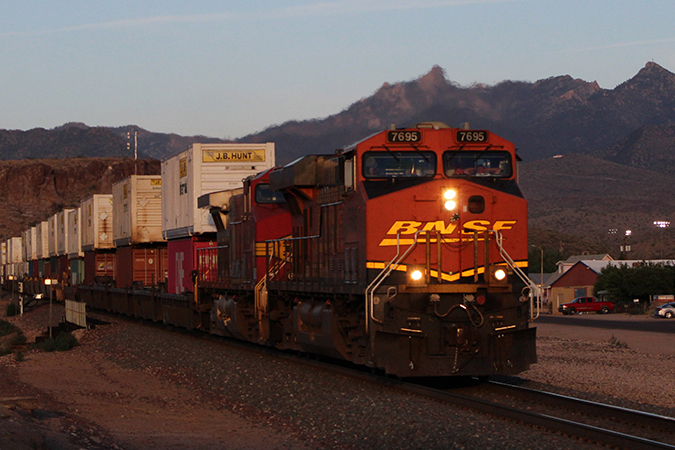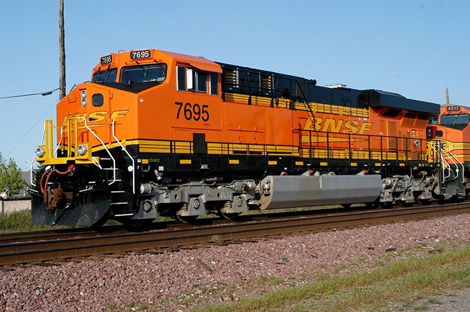 This cream and green paint scheme is featured on a small number of locomotives. It’s named after Gerald Grinstein, former CEO of BNSF predecessor Burlington Northern, and is sometimes referred to informally as “Grinstein Green.” One of the remaining locomotives featuring this unique paint scheme is numbered 9535 and now features a BNSF logo.
