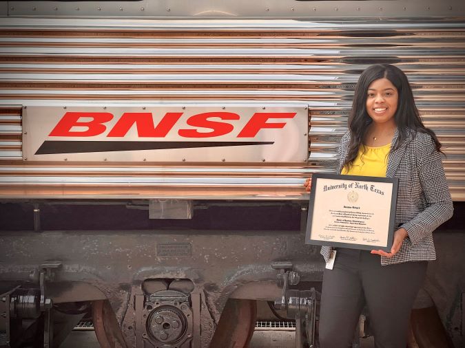 In August 2021, Jasmine Richard enrolled at the University of North Texas to begin her Master of Business Administration with an emphasis in supply chain management, wanting to learn more about the business aspect of BNSF.