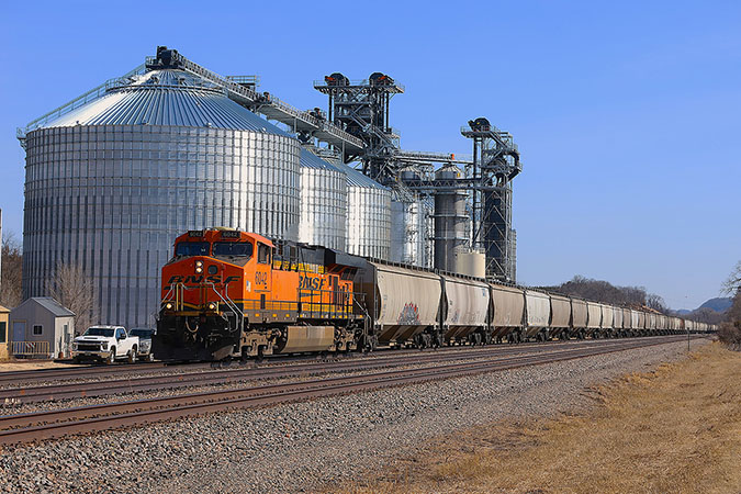 Once the grain – mainly corn and soybean – is ready for market, BNSF shuttle trains, made up of approximately 110-116 hopper cars, will enter the facility for loading, which will take about 10 hours. From Hager City, the BNSF trains will move primarily west to Texas and California.